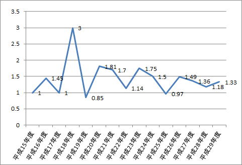 平成25年度以降は新制度になっての倍率です。おおよその参考にはなると思います。